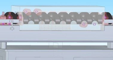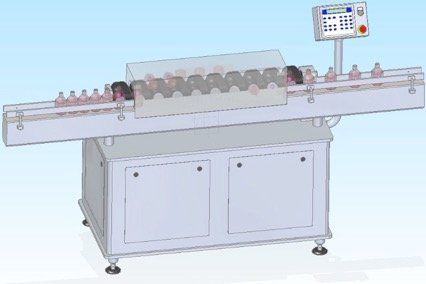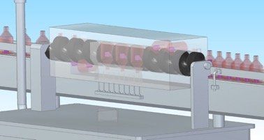 Limpeza de frascos através de sopro com ar comprimido - Produção: 5000 un/h.