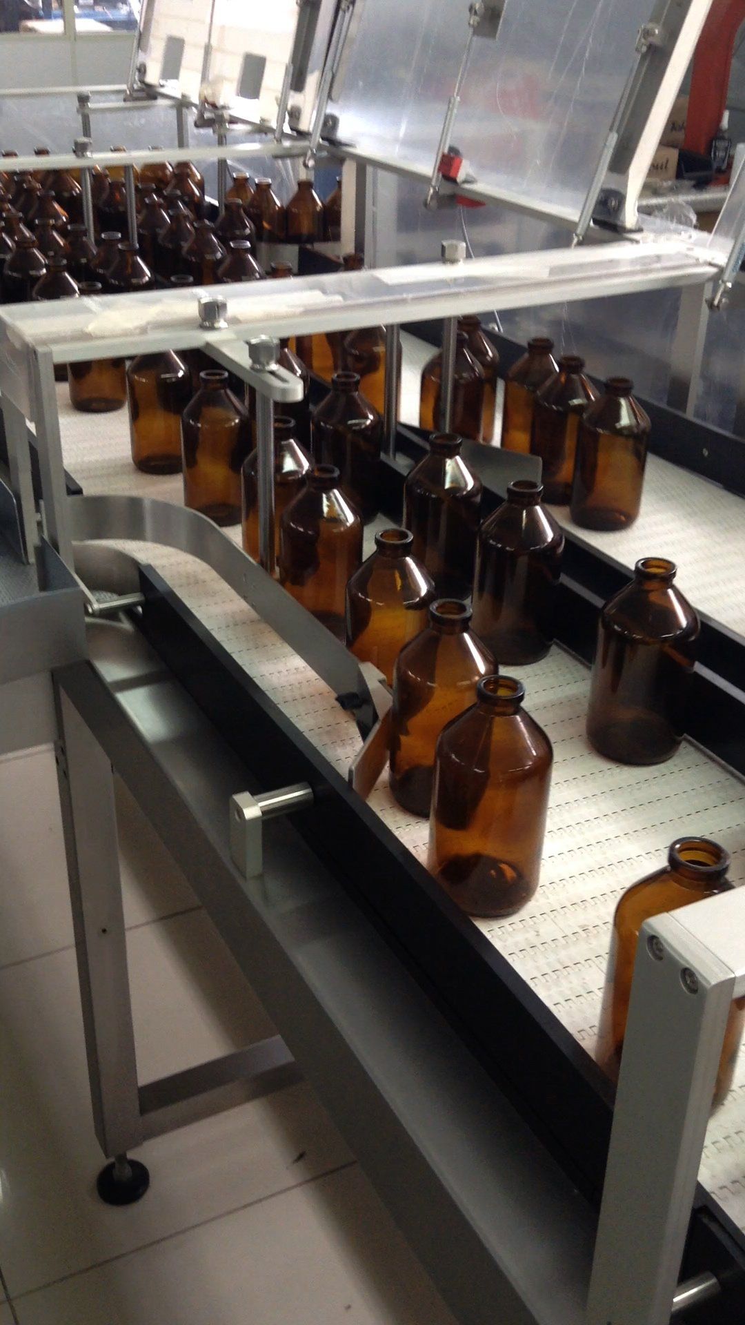• Os guias de saída responsáveis pela direção de movimentação dos frascos deverão ser posicionados manualmente, através de manípulos de fixação sem a necessidade de utilização de chaves;